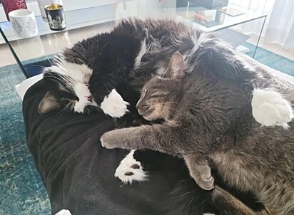 A docilidade da felina passou a ser mais constante, principalmente, com o gatinho doméstico da voluntária. "Ela está apaixonada pelo gato e o segue por toda a casa. Eles cochilam juntos e ela o admira", explicou Celine.