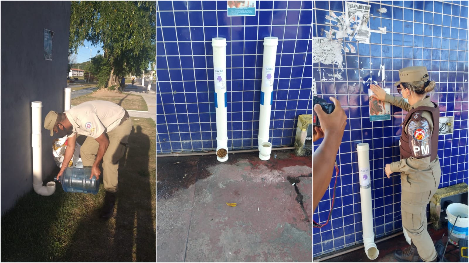 Dois tubos de PVC presos à parede, um com água e outro com comida, ficam disponíveis 24 horas para os animais de rua nos bairros da cidade de Dias D’Ávila, região metropolitana de Salvador. A iniciativa da 36ª CIPM surgiu durante a pandemia, quando os policiais militares observaram o aumento do número de abandono de cães e gatos. O projeto, que teve início em 2020, contemplava quatro bairros, mas, neste mês de setembro, foi ampliado para mais duas localidades.