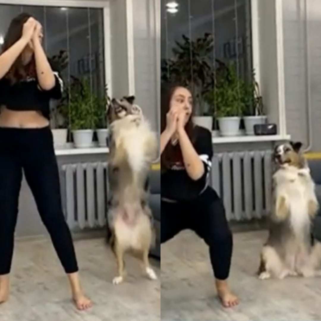 Um cachorro viralizou nas redes socais após ser flagrado fazendo exercícios físicos com sua tutora dentro de casa. O pet estava praticando agachamentos quando foi filmado acompanhando a jovem no mesmo ritmo.