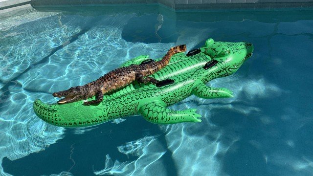 Uma cena bastante inusitada chamou a atenção de uma família, que passava o fim de semana em uma casa alugada, em Miami, na Flórida. O americano David Jacobs se preparava para um casamento quando olhou pela janela e flagrou um intruso na propriedade. Um jacaré estava “relaxando” na piscina, em cima de uma boia em formato de jacaré. O momento foi registrado pelo inquilino e viralizou nas redes sociais.