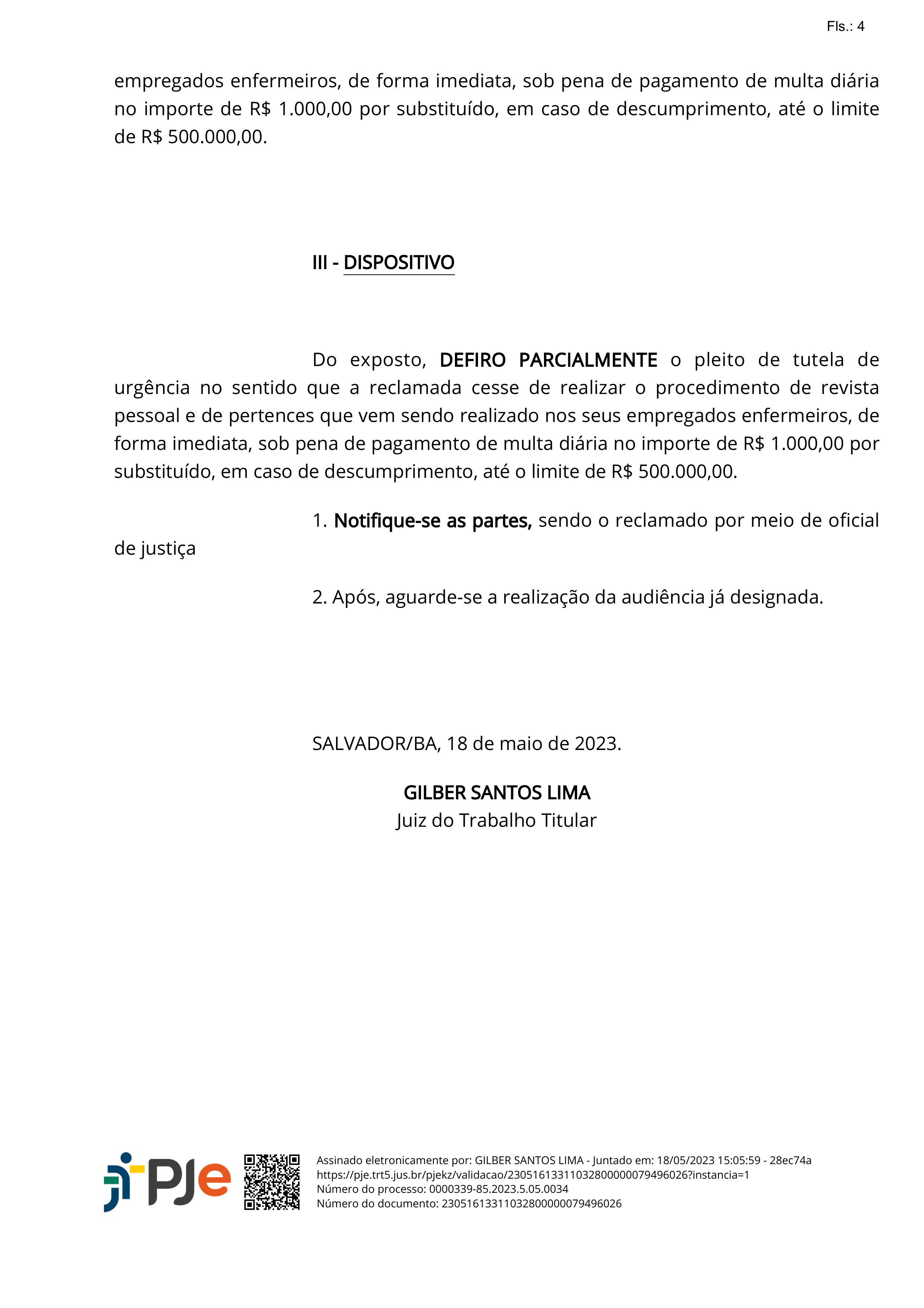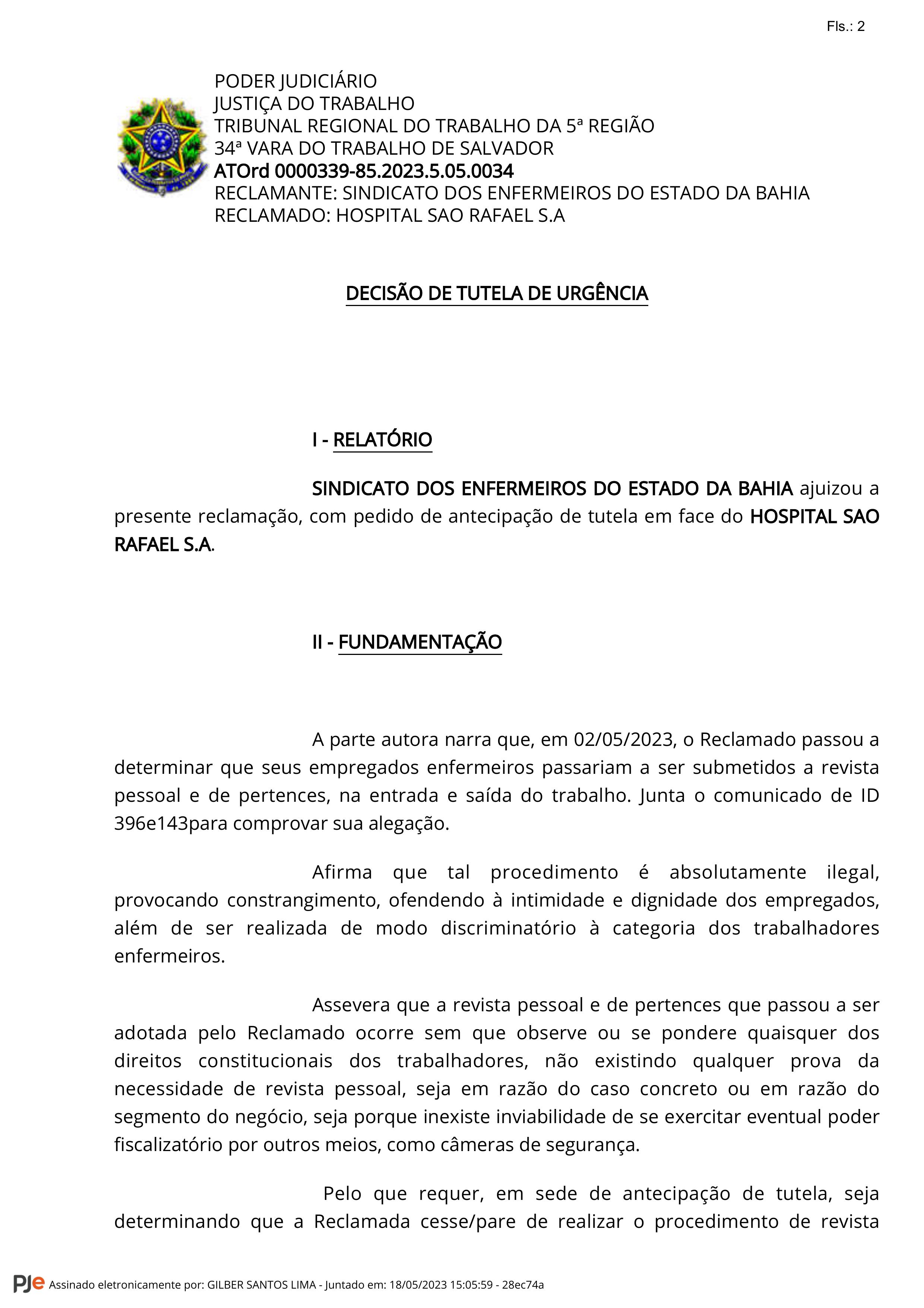 O Sindicato dos Enfermeiros do Estado da Bahia (Seeb) esteve, na noite de sábado (20), no Hospital São Rafael, em Salvador, para averiguar o cumprimento de uma decisão judicial que proíbe as unidades da Rede D’Or de realizarem revistas nos enfermeiros e técnicos. Em caso de descumprimento, o hospital deve pagar multa diária de R$ 1.000,00 por cada enfermeiro atingido.