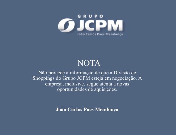 "Não procede a informação de que a Divisão de Shoppings do Grupo JCPM esteja em negociação. A empresa, inclusive, segue atenta a novas oportunidades de aquisições", disse por meio de nota.