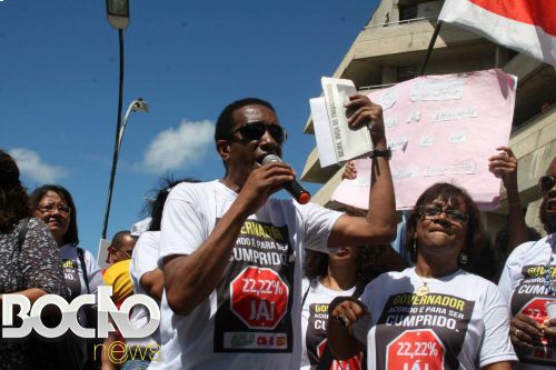 Os professores querem reajuste de 22,22% no piso nacional. Eles alegam que o governo fez acordo com a categoria, em novembro do ano passado, que garantia os valores do piso nacional, e depois ignorou o acordo mandando para a Assembleia um projeto de lei com valores menores. Os deputados aprovaram no dia 25 de abril o projeto enviado pelo executivo que garante o piso nacional a mais de cinco mil professores de nível médio.