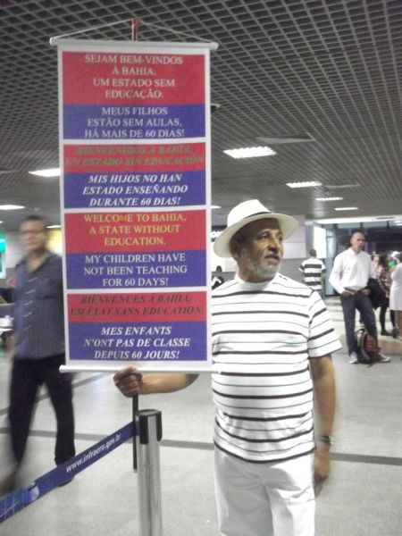 Nesta semana, um dos pais indignados com a situação levou a sua revolta ao Aeroporto Internacional de Salvador. Ficou segurando uma placa revelando para todos que chegavam à capital do estado que as coisas não andam bem.