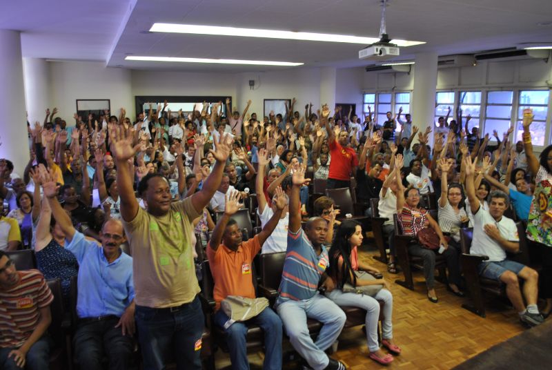 Os servidores da UFBA aprovaram por ampla maioria, em regime de votação, o desconto do fundo de greve, que é feito nos contracheques dos servidores para manter o movimento. Eles debateram também as exigências da Lei de Greve. “Vamos cumprir o que determina a Lei de Greve. Estamos deflagrando a greve hoje, mas cumpriremos o prazo de 72 horas para o inicio da greve, que no caso será sexta-feira, dia 15”, explica a coordenadora geral da ASSUFBA Sindicato, Nadja Rabello.