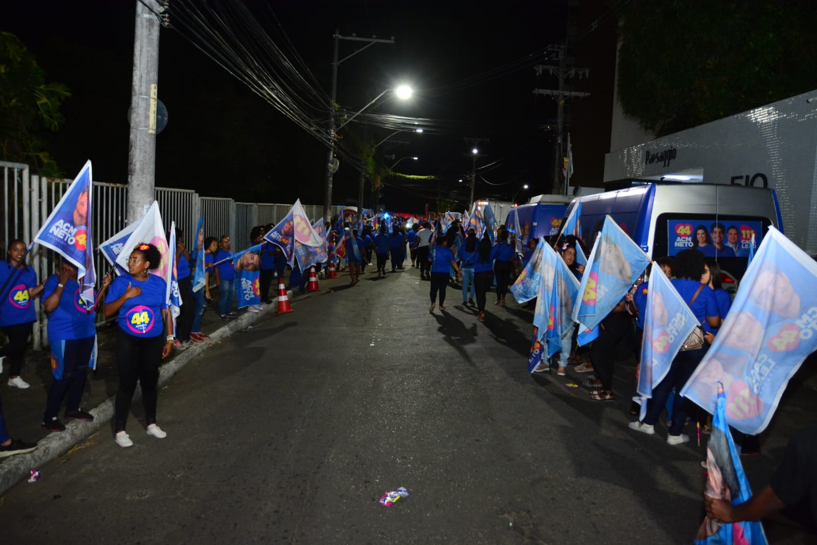 Antes do início do debate entre os candidatos ao Governo do Estado, na TV Bahia, às 22h30 desta terça-feira (27), apoiadores do candidato carlista, ACM Neto (UB), ocuparam a rua Aristides Novis, onde está localizada a emissora.