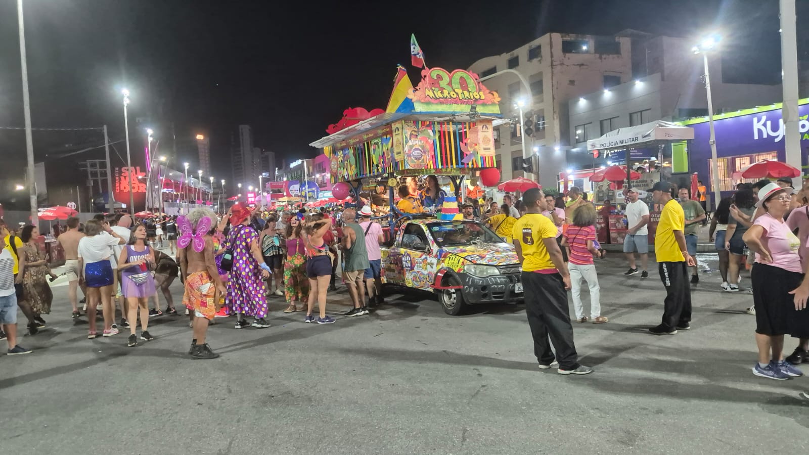 O microtrio de Ivan Huol completou 30 carnavais neste sábado (14) e ganhou comemoração especial antes de entrar no circuito Dodô, na Barra-Ondina. Um bolo de aniversário foi colocado sobre o capô do veículo, marcando simbolicamente as três décadas do projeto nas ruas de Salvador.