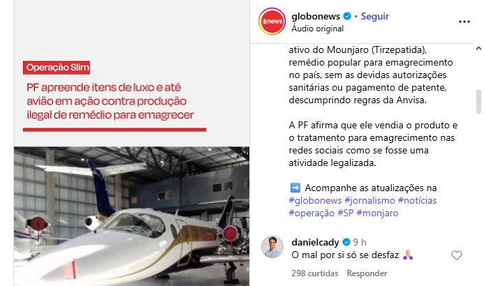 Cady vinha chamando a atenção para os efeitos colaterais dessas substâncias ao defender abordagens naturais para perda de peso. Ao rebater os comentários de Cady, Almeida ressaltou que a semaglutida, substância do Ozempic, é aprovada para tratamento contra obesidade.