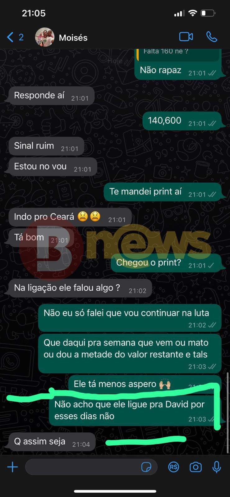 Em mais um áudio enviado por William ao BNews, é possível escutar Moisés falando sobre supostamente não querer mais realizar os esquemas de aposta.
