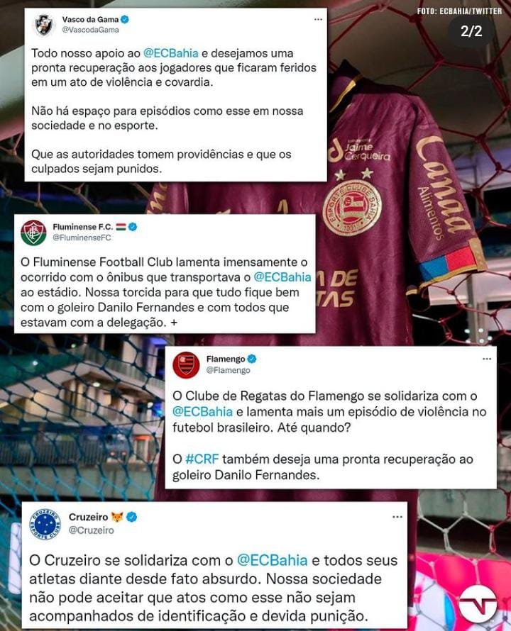O atentado a bombas contra o ônibus da delegação do Bahia, na chegada à Arena Fonte Nova, chocou o futebol brasileiro. O goleiro Danilo Fernandes, um dos atingidos, precisou ser levado de ambulância ao hospital.
