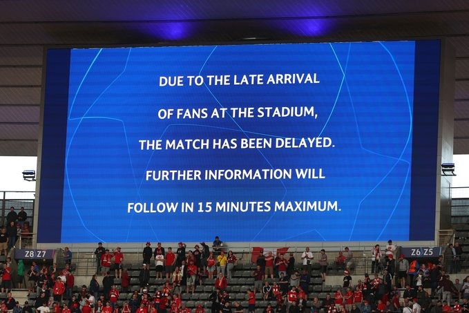 A final da Champions League, que estava marcada para começar às 16h, terá seu apito inicial atrasado em pelo menos 30 minutos devido a invasão de torcedores sem ingressos.
