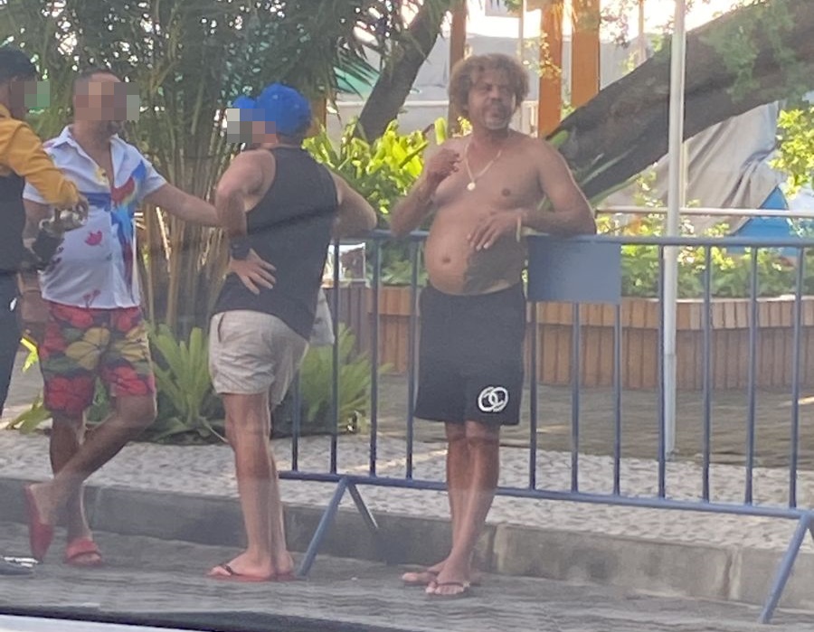 O ex-morador de rua, Givaldo Alves, que ficou conhecido em todo o país após ser flagrado mantendo relações sexuais com esposa de um personal trainer, está aproveitando sua fama. Ele foi visto neste domingo (1º) na Bahia Marina, bem à vontade, sem camisa.