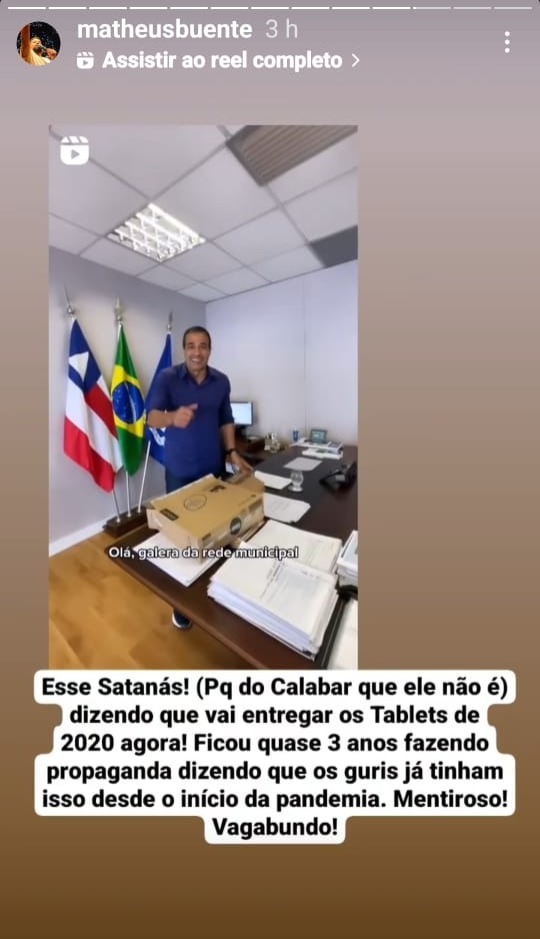 O humorista Matheus Buente, que também é professor da rede municipal, pegou ar com Bruno Reis nesta semana.