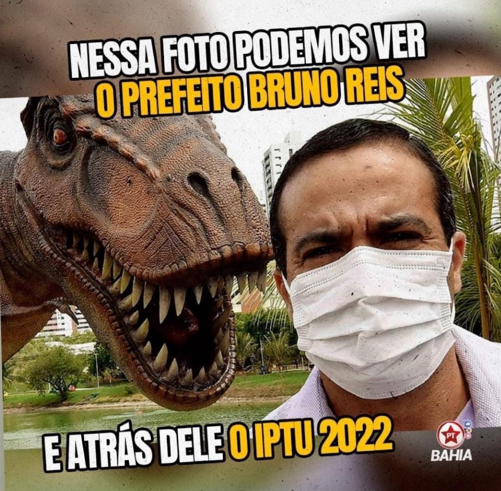 Ainda rende nas redes os memes e trocadilhos com o prefeito Bruno Reis em associação aos novos dinossauros que ele anunciara para o parque de Salvador. Mas agora o material virou munição nas mãos do PT nos protestos contra o aumento do IPTU. Bruno já está sendo chamado até de Brunossauro Rex! A turma não perdoa.