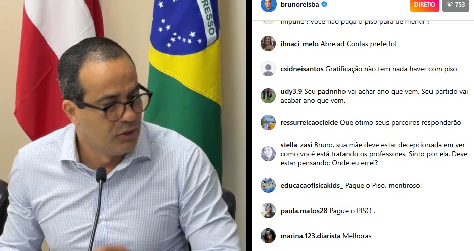 Durante a live da coletiva de imprensa do Pivete do Calabar no Instagram, o perfil do prefeito recebeu uma enxurrada de críticas dos educadores que reivindicavam o pagamento do piso salarial à categoria. Outro detalhe que chamou a atenção de quem acompanhava o pronunciamento é que quando foram abertas as perguntas para a imprensa, a transmissão foi encerrada. Logo depois, a live foi apagada. O que será que aconteceu?