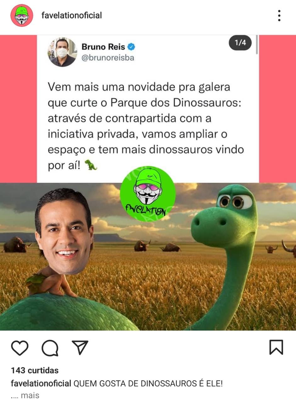 O prefeito Bruno Reis virou meme nesta semana ao anunciar uma parceria de Salvador com a iniciativa privada para ampliar o acervo de dinossauros no parque do Stiep. Aliás, chama a atenção a obsessão do gestor com o local pré-histórico.