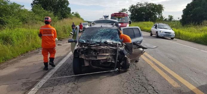 Um acidente no km 113 da rodovia federal, BR-135, na madrugada deste sábado (9) deixou seis pessoas feridas e uma mulher morreu. Os veículos Renault Clio e um Jeep Renegade colidiram de frente a 2 km do povoado Pindoval, na cidade de Miranda do Norte, a 124 km de São Luís.