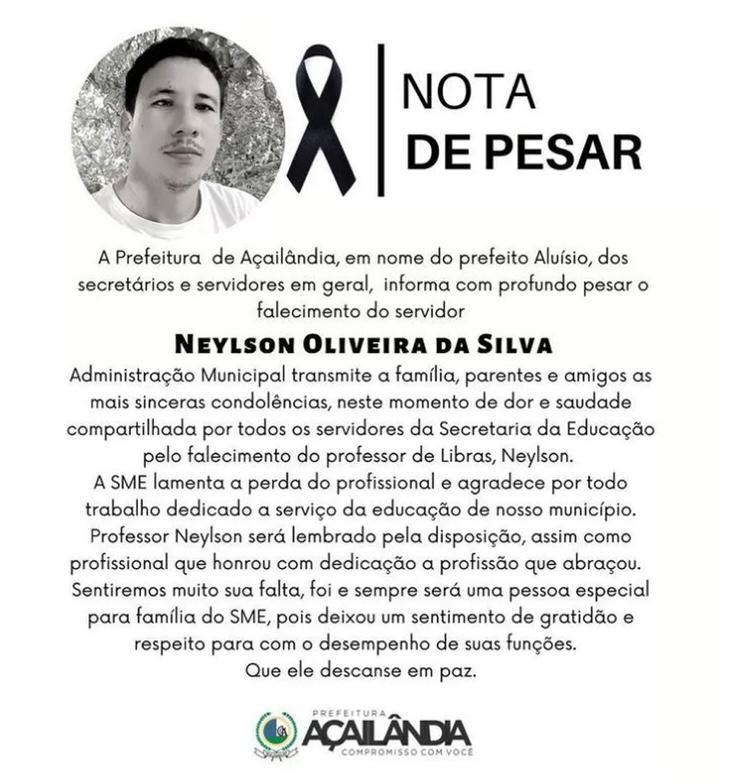 O corpo de um professor universitário foi encontrado morto em um terreno baldio no bairro Laranjeiras, na cidade de Açailândia, no Maranhão, nessa quarta-feira (10). A vítima foi morta por asfixia e estrangulamento, segundo a Polícia Civil. Ele foi identificado como Neylson Oliveira da Silva.