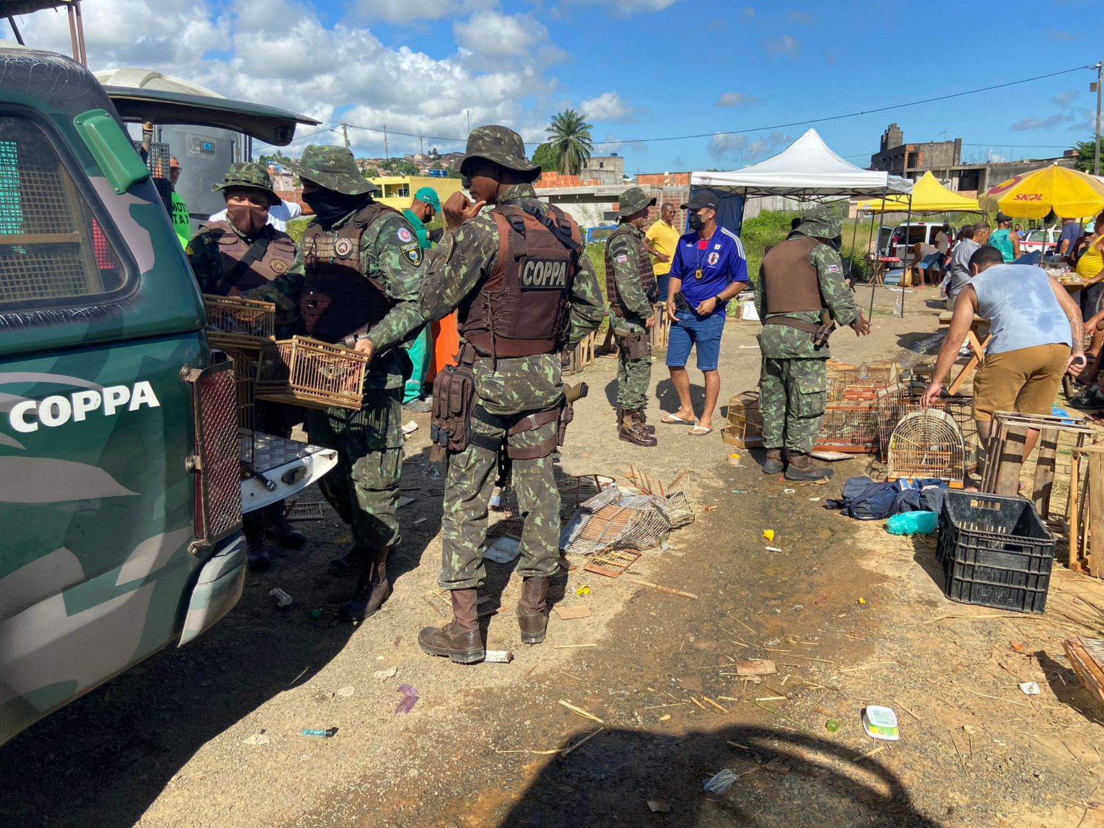Uma operação de combate ao tráfico e comércio ilegal de animais silvestres foi realizada na manhã deste sábado (9), na feira livre de Simões Filho, Companhia de Polícia e Proteção Animal (COPPA) da Polícia Militar da Bahia. Na ocasião foram apreendidas 120 aves silvestres de espécies variadas e quatro pessoas foram presas.