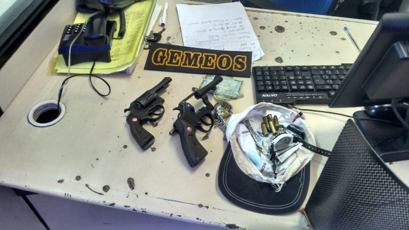 Policiais Militares da Operação Gêmeos, guarnição comandada pelo Soldado Pimentel, estava em ronda na área da BR-324 quando avistou dois homens em atitude suspeita, no ponto de Porto Seco Pirajá. Durante a abordagem, os policiais encontraram um revólver calibre 38 em posse de um dos elementos, que estavam juntos no ponto de ônibus.