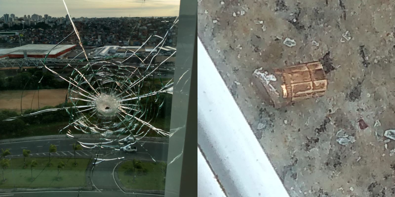 Uma bala perdida atingiu um apartamento no Edifício Eugênia, localizado no bairro do Horto Bela Vista, em Salvador. Informações que chegaram ao BNews dão conta de que o tiro teria sido disparado por bandidos em fuga na região da BR-324. Imagens mostram que o projetil atravessou o vidro de proteção da varanda do imóvel.