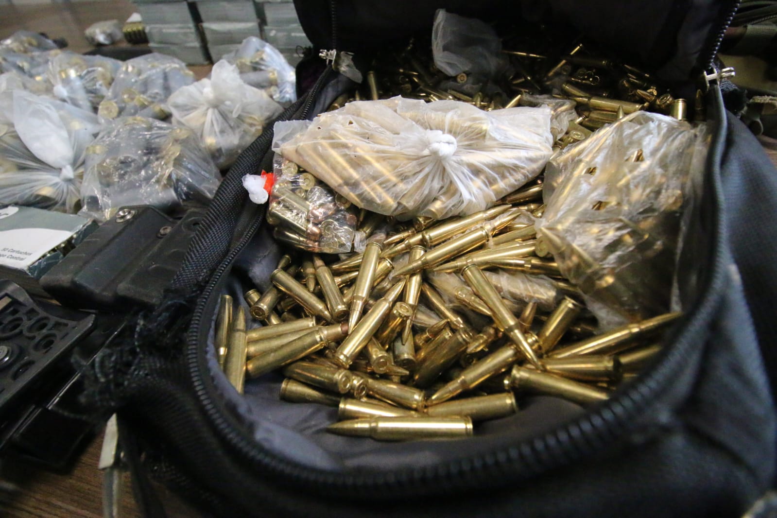 Na região do Lobato, mais armamentos foram encontrados. Foram, no total, 13 fuzis calibres 7,62 e 5,56, uma submetralhadora 9mm, duas espingardas calibre 12, duas pistolas calibre 9mm, uma granada, carregadores, mais de 5.000 munições e tabletes de crack.