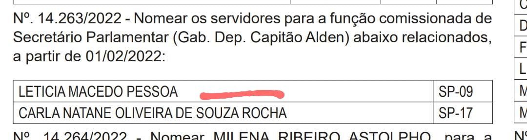 No print não há comentários de Alden, mas é possível identificar um integrante do grupo nomeado como Capitão. Uma das pessoas que aparece no print reforçando os xingamentos contra Porciúncula é Letícia Macêdo, secretária parlamentar nomeada no gabinete do deputado na Assembleia Legislativa da Bahia.