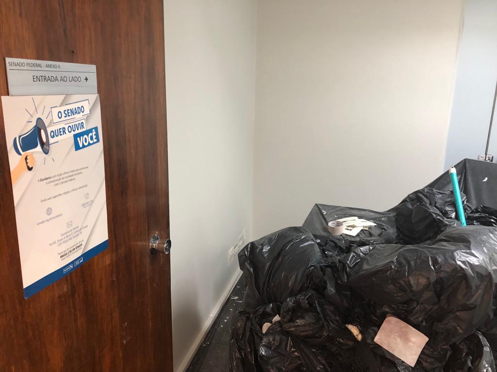 No corredor da ala Teotônio Vilela é possível encontrar livros e pastas dos senadores. Profissionais de obras entram e saem do local com o objetivo de finalizar as atividades em tempo para os ocupantes.