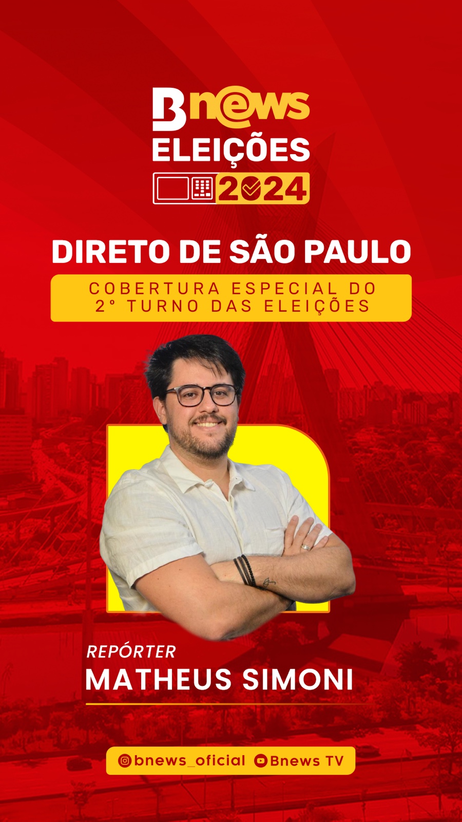 A maior metrópole do país decidirá entre Ricardo Nunes (MDB) e Guilherme Boulos (Psol) no segundo turno, que acontece neste domingo (27). O enviado especial será Matheus Simoni, co-editor e responsável pelo BNews Premium, que traz as principais investigações e matérias exclusivas sobre a Bahia, o Brasil e o mundo.