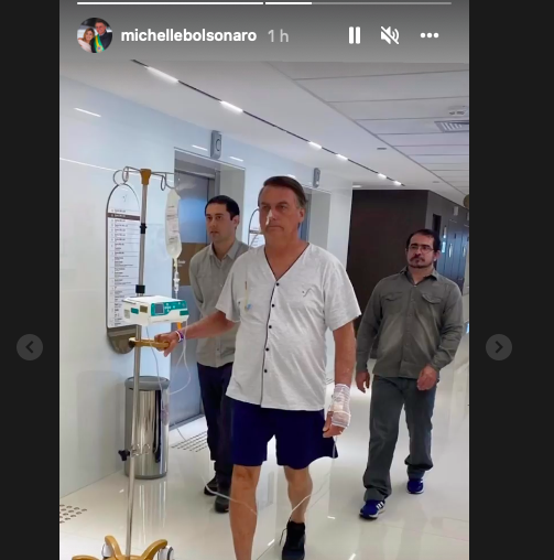 A primeira-dama do Brasil, Michele Bolsonaro, publicou no story do seu perfil do Instagram a primeira foto do presidente Jair Bolsonaro (PL) fora do leito do hospital Vila Nova Star, em São Paulo. A publicação foi feita na manhã desta terça-feira (4).