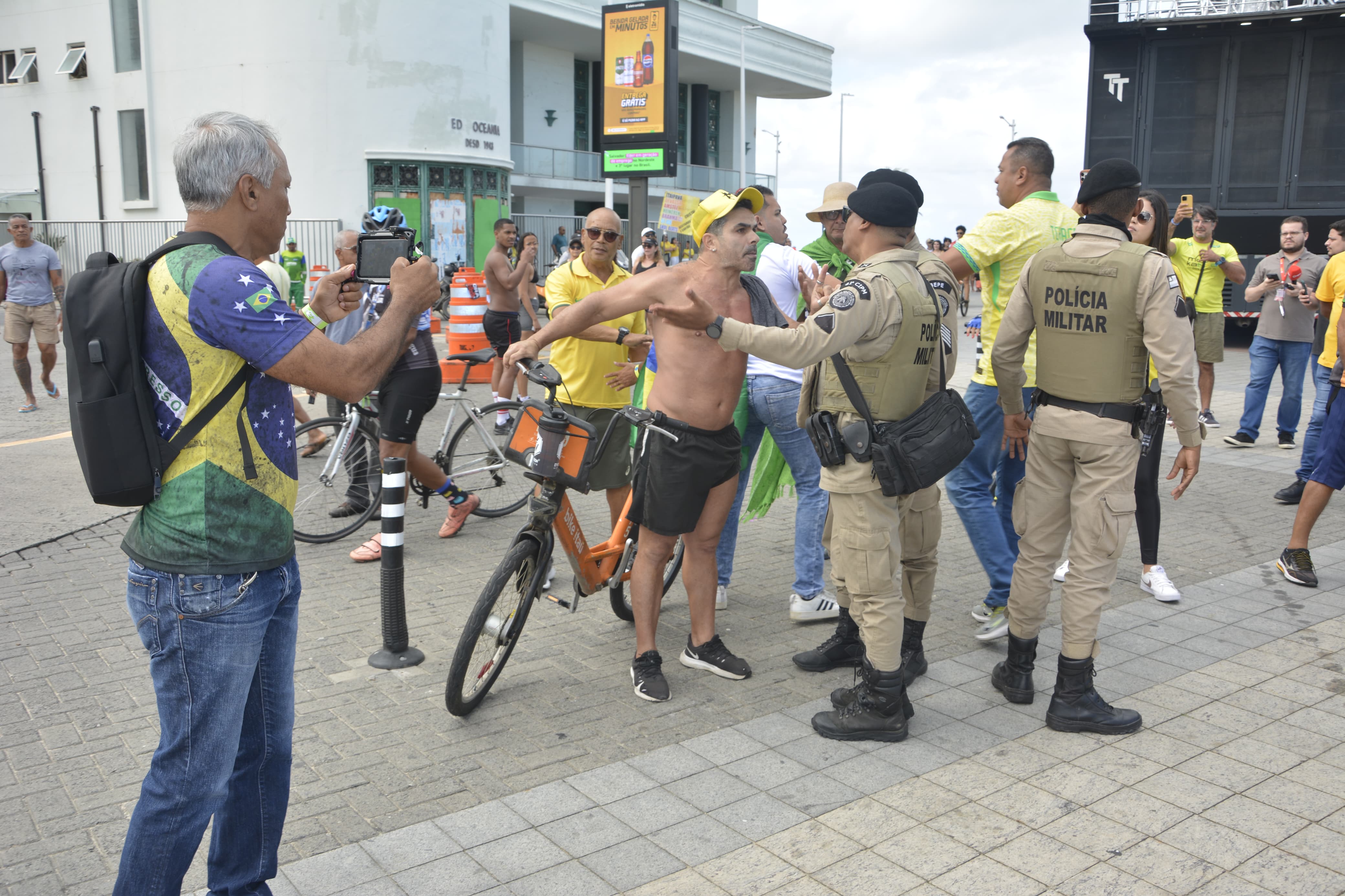 O rapaz precisou ser escoltado pela Polícia Militar para deixar o local. O BNews registrou o tumulto. "Não encostem em mim", disse ele aos bolsonaristas que tentavam agredi-lo.