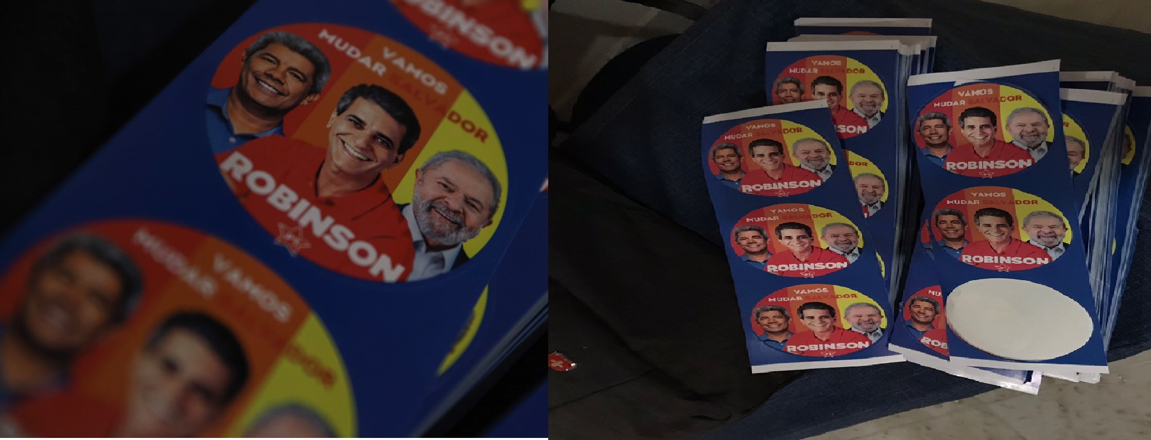 Referendado como pré-candidato do PT de Salvador para a disputa pela Prefeitura em 2024, o deputado estadual Robinson Almeida (PT) já conta, inclusive, com material oficial de pré-campanha. Adesivos do tipo "praguinha" vazaram nas redes sociais, e chegaram até o BNews, um dia após a confirmação do nome do parlamentar para o pleito.