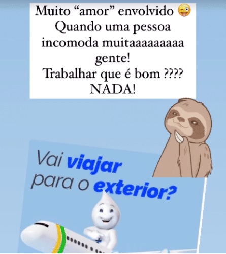 “Muito amor envolvido. Quando uma pessoa incomoda muita gente. Trabalhar que é bom???? NADA”, escreveu a esposa do ex-presidente, Jair Bolsonaro (PL), colocando uma trilha sonora da música “Me Esqueça” e um gif de uma preguiça.