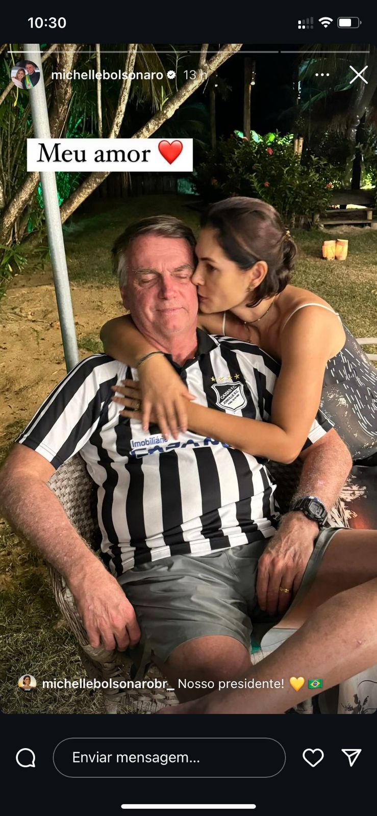 “Meu amor”, disse Michelle na publicação feita no Instagram, onde ela aparece beijando o marido.