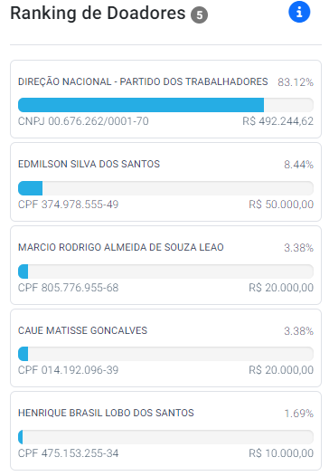 Dentre os candidatos apoiados pelo PT em Salvador e Região Metropolitana como Camaçari e Lauro de Freitas, até o momento, Rosalvo é o único com doações registradas no DivulgaCand.
