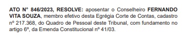 A vaga do Tribunal de Contas dos Municípios (TCM) está, oficialmente, aberta. Na edição do Diário Oficial da Corte desta quinta-feira (21), foi publicada a aposentadoria do conselheiro Fernando Vita.