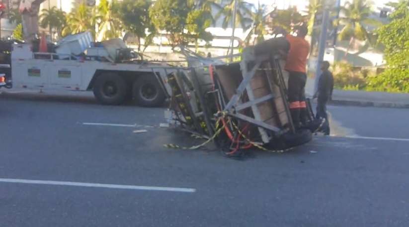 Um motorista perdeu o controle do veículo, que transportava ma carrocinha com som de paredão, e capotou na Rua Frederico Simões, Caminho das Árvores. O acidente ocorreu por volta das 03h30 deste segunda-feira (27).