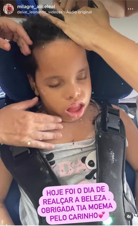 A pequena Alice Leal, de apenas sete anos, tinha uma vida saudável até os seis. Há quase dois anos ela sofreu dois Acidentes Vasculares Cerebrais (AVC) e após esse episódio passou a ter uma vida completamente diferente do habitual. Ela chegou a ser diagnosticada com morte cerebral e estado vegetativo permanente, mas nos dias atuais já possui uma melhora considerável.